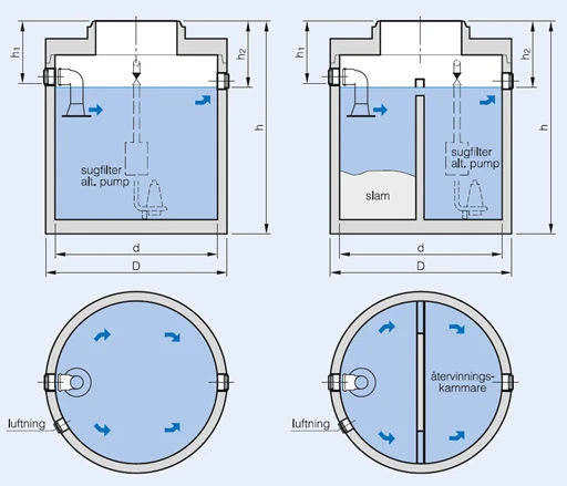 pumpning måste ske före slamavskiljaren bör man välja en pump där pumpning kan ske ofta med små flöden under kort