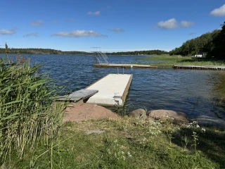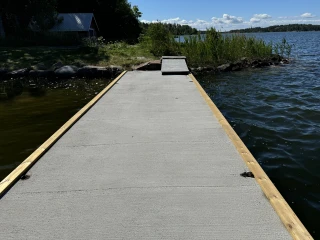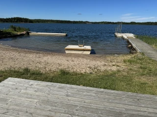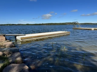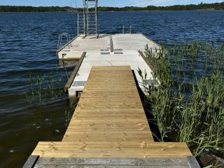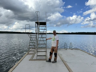 Till Knutnäs badstrand levererades två flytbryggor, en med hopptorn samt en badflotte. Betongvikter på totalt 5 ton för att hålla allt på plats.